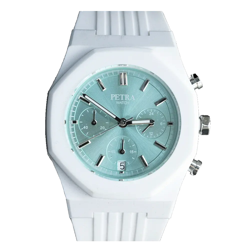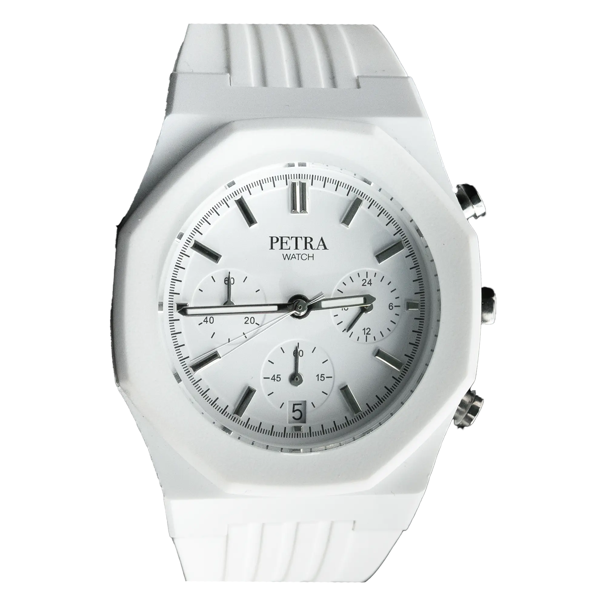 CHRONO Flex è la nuova espressione del tempo firmata Petra Watch: una linea di orologi dinamici, dal design deciso, con quadranti in più tonalità e cinturino in gomma pensato per adattarsi al ritmo di ogni giornata. Perfetto equilibrio tra stile sportivo ed eleganza moderna, CHRONO Flex accompagna chi vive con intensità, trasformando ogni secondo in una dichiarazione di personalità.